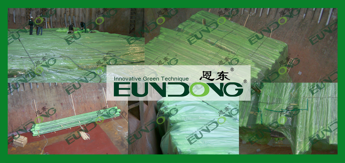 *图示为远洋货轮装载使用恩东气化性防锈膜包装过的建筑钢材。